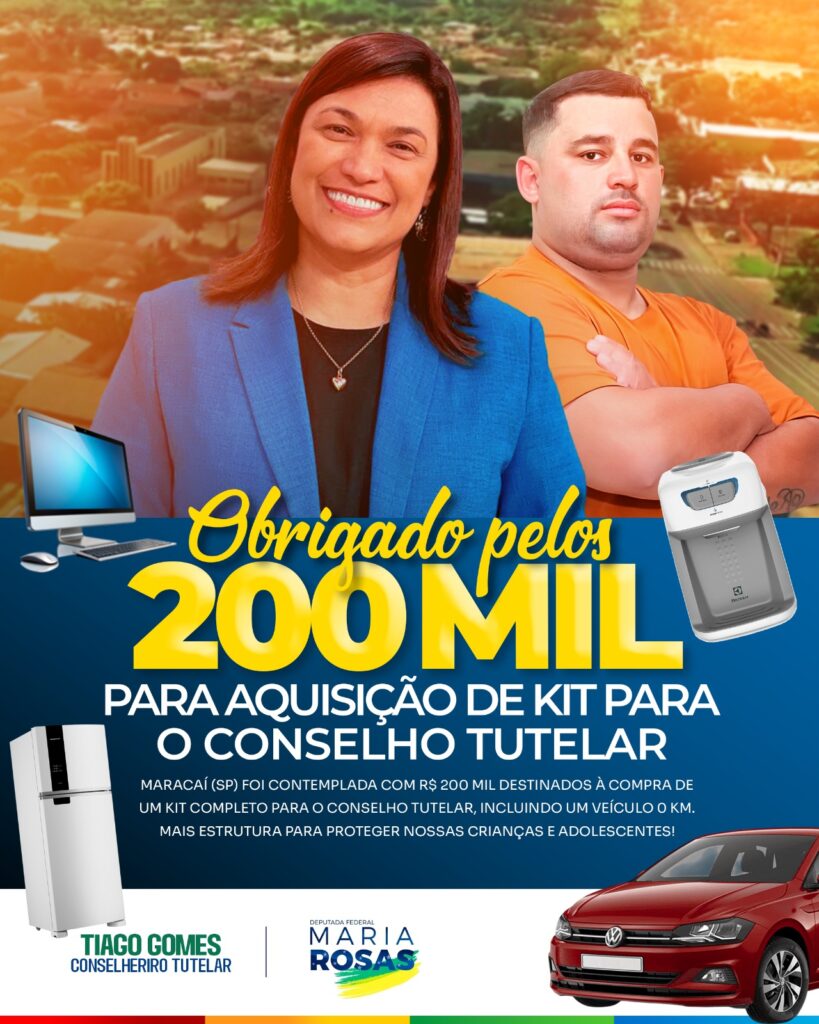 O município de Maracaí foi contemplado com um kit completo de equipamentos para o Conselho Tutelar, fruto de uma emenda parlamentar da deputada federal Maria Rosas. A conquista foi destacada pelo conselheiro tutelar Tiago Gomes, que agradeceu o apoio e ressaltou a importância da nova estrutura para o fortalecimento da rede de proteção às crianças e adolescentes da cidade.