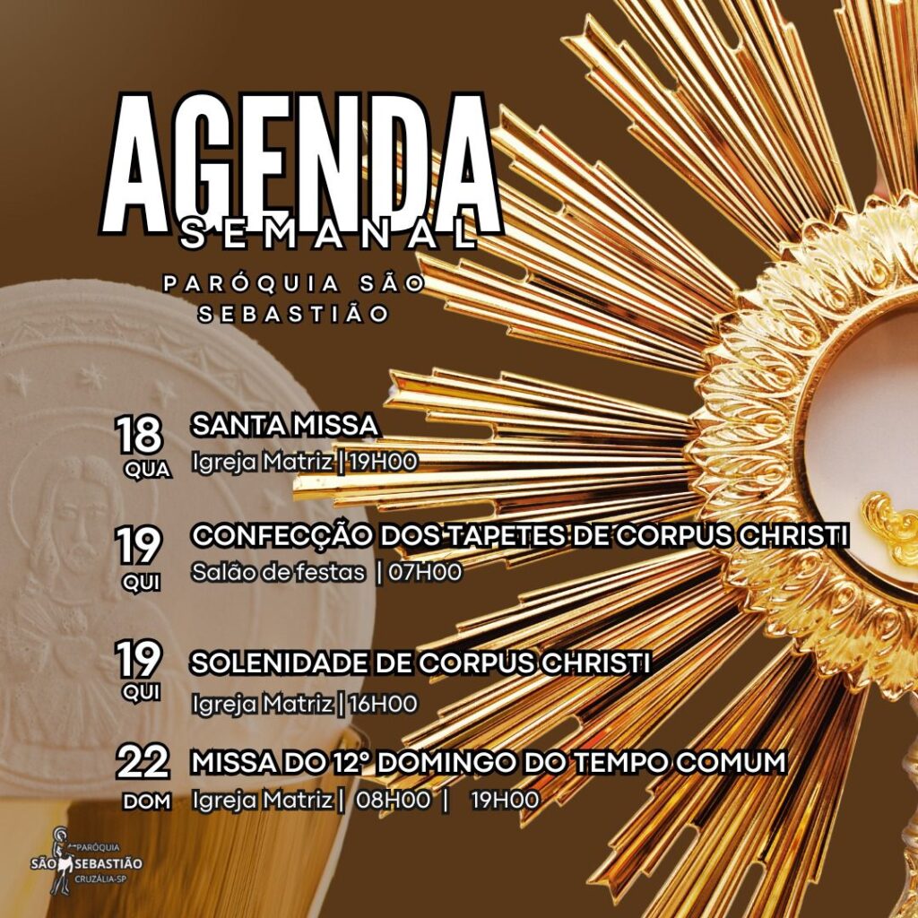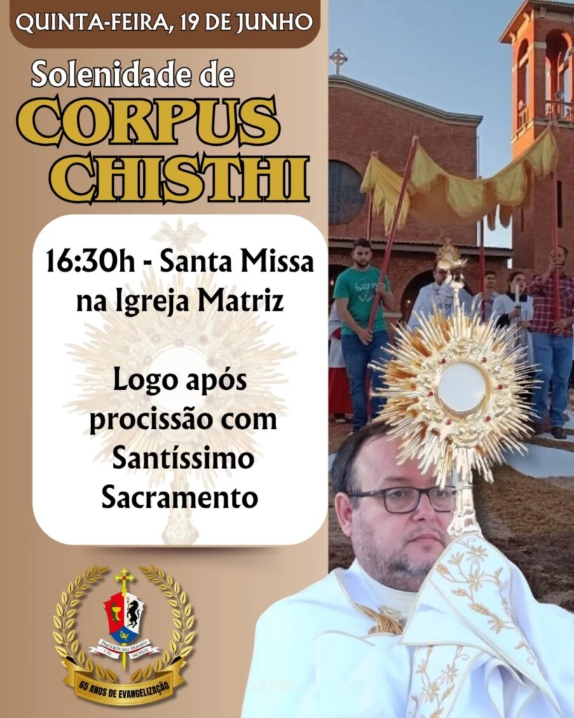 As paróquias da região se organizam para celebrar, nesta quinta-feira, 19 de junho, a Solenidade de Corpus Christi, uma das mais importantes do calendário litúrgico da Igreja Católica. As celebrações contarão com missas, procissões e, em muitas comunidades, a tradicional confecção dos tapetes artesanais por onde o Corpo de Cristo será conduzido.
