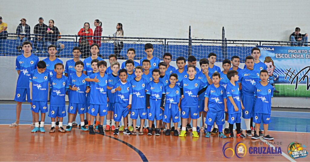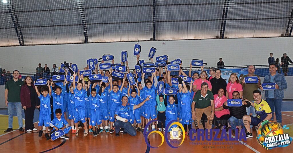 Na manhã do último sábado, 28 de junho, a Prefeitura de Cruzália celebrou um momento especial para o esporte municipal. Aproveitando a estreia das equipes Sub-09 e Sub-11 na Copa PV48 de Futsal, realizada no Ginásio Municipal de Esportes “Joaquim Cardoso de Oliveira”, os alunos das escolinhas de Futebol e Futsal receberam os novos kits de uniforme de passeio, que serão utilizados em competições disputadas fora do município.
