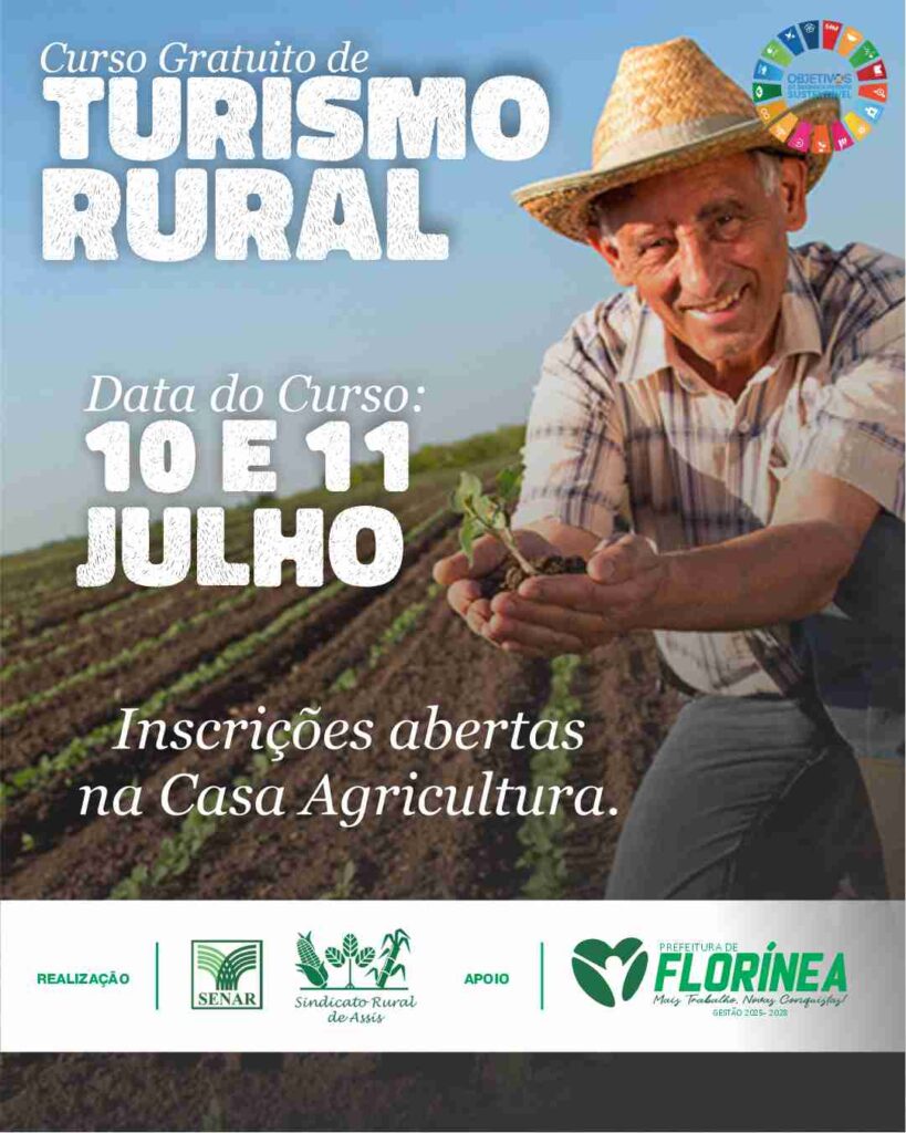 O curso é promovido pelo Serviço Nacional de Aprendizagem Rural (Senar) e pelo Sindicato Rural de Assis, com o apoio da Prefeitura Municipal de Florínea, por meio da administração “Mais Trabalho, Novas Conquistas”. A proposta é incentivar a valorização das práticas tradicionais do campo, promovendo uma alternativa viável e sustentável ao turismo convencional.