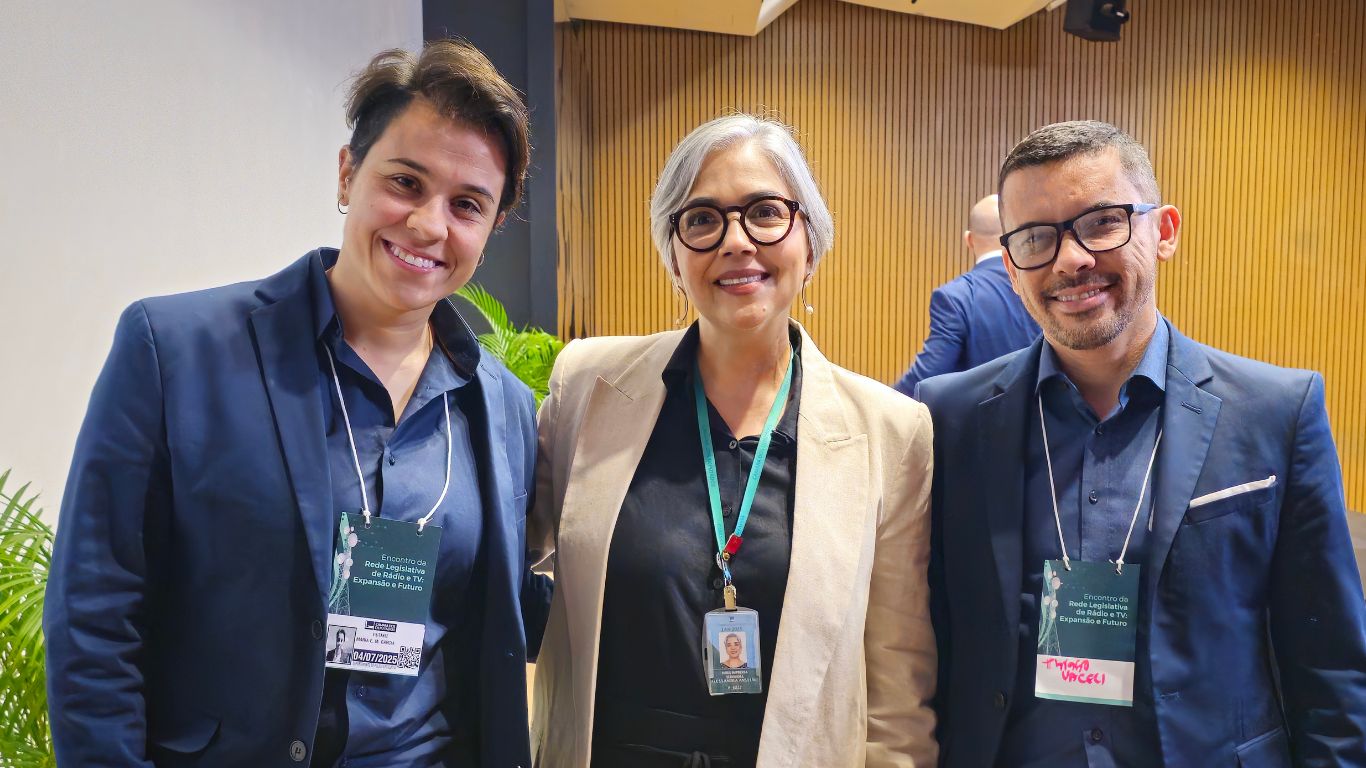 Thiago e Duda participaram do “Encontro da Rede Legislativa de Rádio e TV: Expansão e Futuro”, e garantiram passos importantes para implantação da Rádio Câmara na cidade de Maracaí, que vai ajudar a aproximar ainda mais o Legislativo da população e democratizar o acesso à informação.