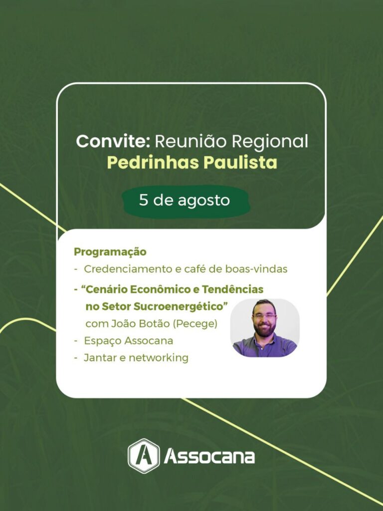 A Assocana (Associação Rural dos Fornecedores e Plantadores de Cana do Vale do Paranapanema) promove, na próxima terça-feira, 5 de agosto, um Encontro Regional com produtores de cana-de-açúcar em Pedrinhas Paulista. O evento será realizado na Chácara Castelli, localizada na Avenida Brasil, nº 632, e tem como objetivo reunir os produtores da região para um momento de diálogo, troca de experiências e fortalecimento do setor canavieiro.