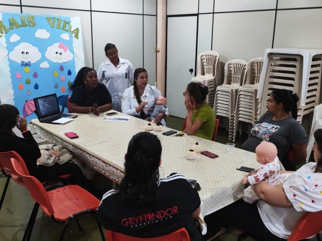 Durante a palestra, as gestantes receberam ainda orientações práticas sobre como proceder em situações de engasgamento durante a amamentação, com demonstrações das manobras de primeiros socorros para desobstrução das vias aéreas. O momento foi marcado pela troca de conhecimentos e pelo esclarecimento de dúvidas das participantes, reforçando o compromisso do município com a promoção da saúde materno infantil.