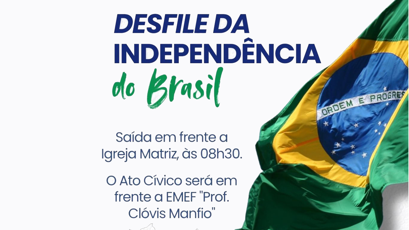 A Prefeitura de Pedrinhas Paulista realiza amanhã (dia 4), um desfile em celebração ao Dia da Independência do Brasil. O evento está previsto para começar às 8h30, com concentração em frente à Igreja Matriz, de onde partirá o cortejo em direção à Escola Municipal de Ensino Fundamental Professor Clóvis Manfio, local onde ocorrerá o ato cívico.