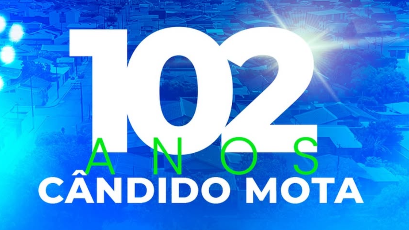 Em celebração aos 102 anos de Cândido Mota, a Prefeitura Municipal, com o apoio da Câmara de Vereadores e do Ministério do Turismo do Governo Federal, preparou uma programação especial repleta de atrações culturais e musicais. O evento promete movimentar a cidade entre os dias 23 e 26 de outubro, com momentos de fé, tradição e muita música na Praça João XXIII, sempre a partir das 21h.