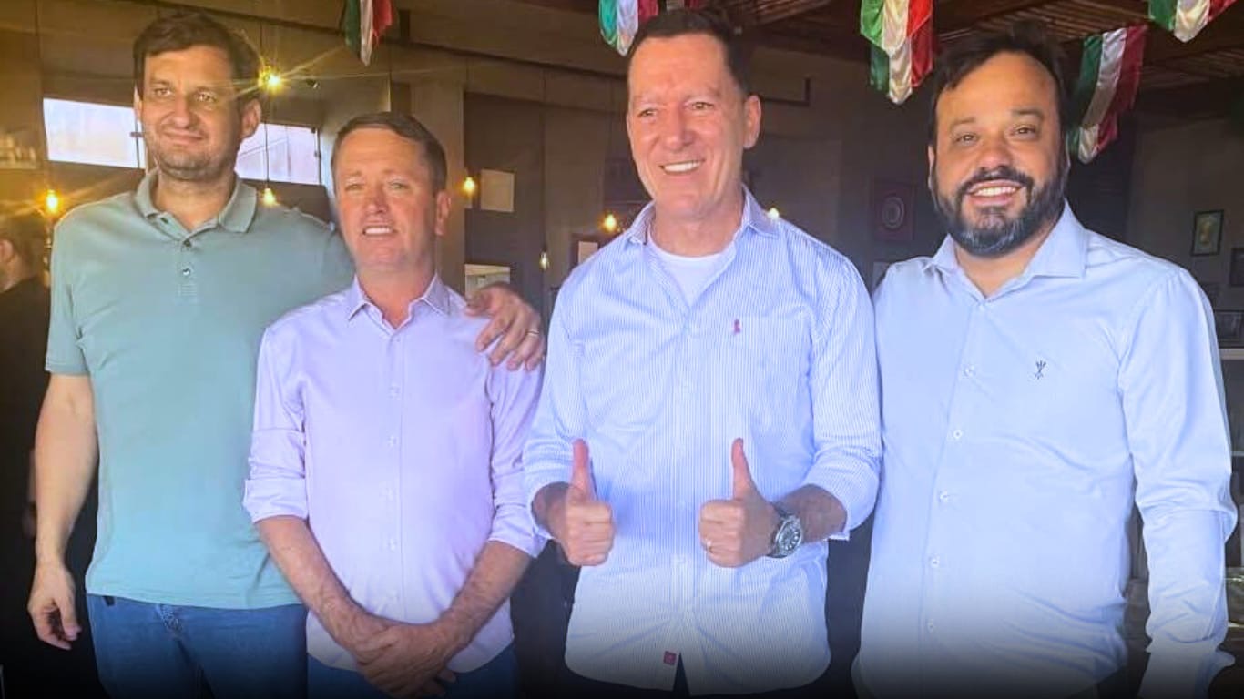 Os prefeitos Sérgio Quejo, de Florínea, Freddie Nicolau, de Pedrinhas Paulista, e Arildo Mosquito, de Cruzália, participaram de uma reunião com o deputado federal Vinicius de Carvalho, realizada em Pedrinhas Paulista.
