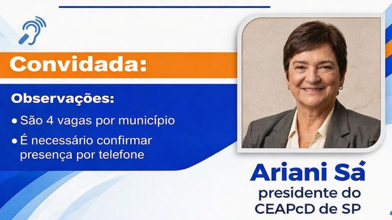A programação contará com a presença de Ariani Sá, presidente do Conselho Estadual para Assuntos da Pessoa com Deficiência de São Paulo (CEAPcD-SP), que irá compartilhar orientações e vivências voltadas ao fortalecimento das políticas públicas e à melhoria da atuação dos conselhos no âmbito municipal.